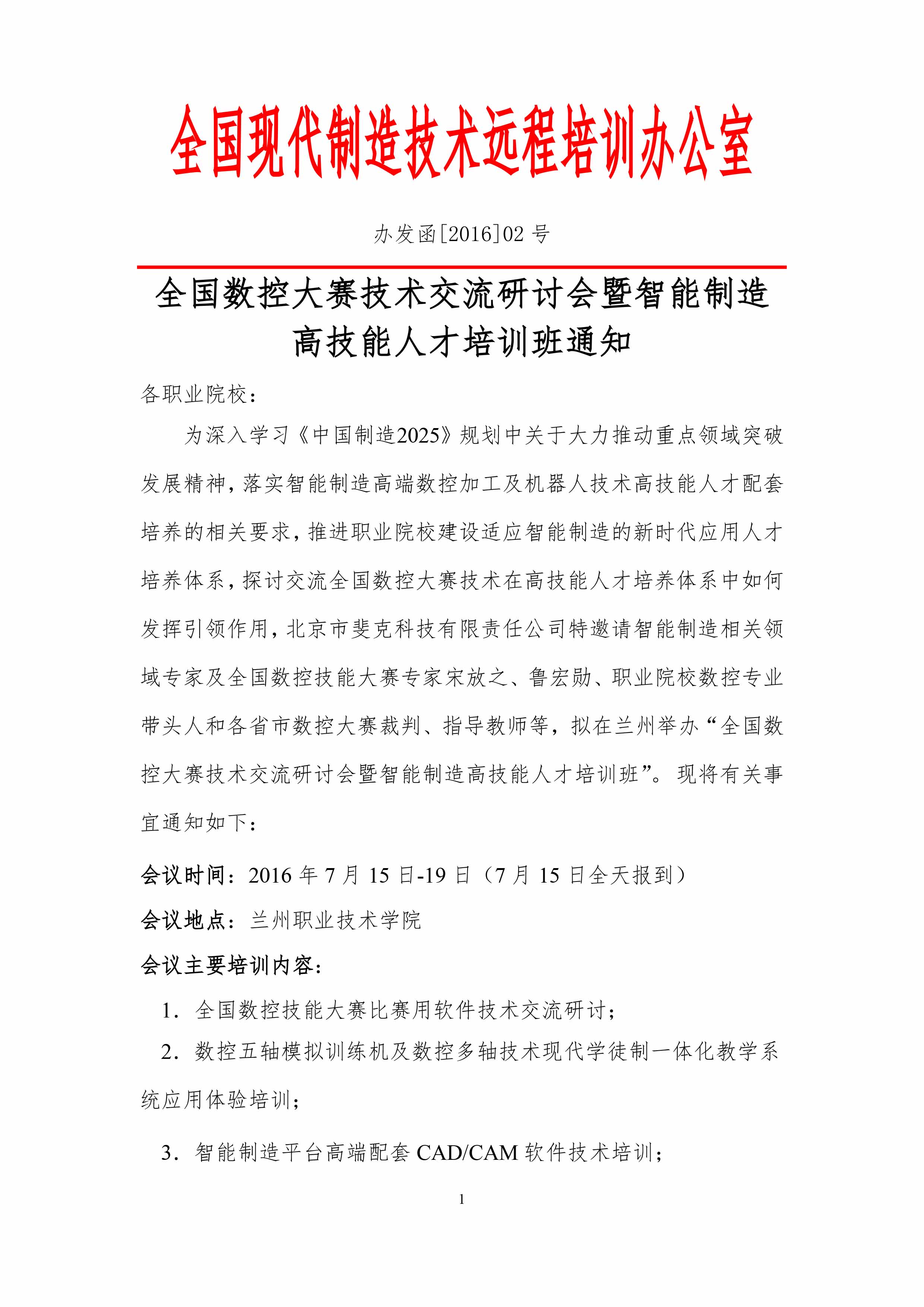 数控大赛技术交流研讨会暨智能制造 高技能人才培训班通知