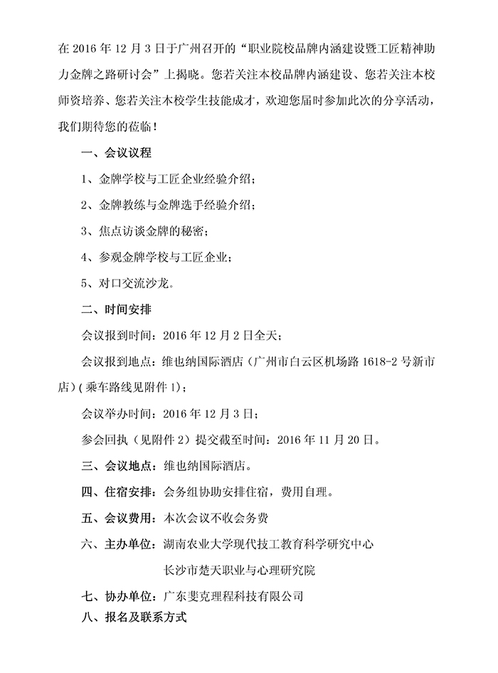 关于召开职业院校品牌内涵建设暨工匠精神助力金牌之路研讨会的通知